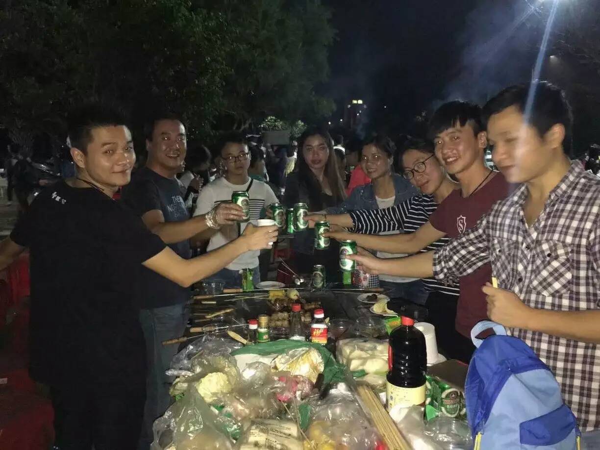 月亮不知几时已经站上了云端,我们在月光下架起烤炉